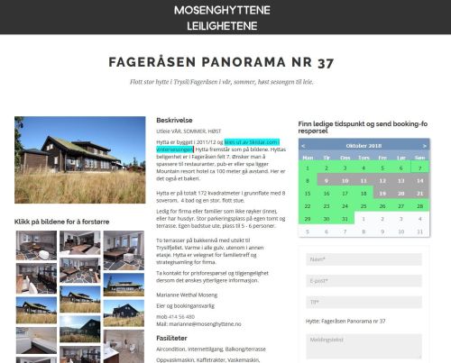 Mosen Hytteutleie formidler utleie av hytter i Trysil og leiligheter i MarMenor (Spania). AFFY har levert publiseringsløsning med hyttebooking-kalender.