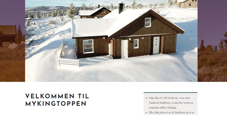 Hjemmesiden Mykingtoppen.no formidler informasjon om hytter for salg på Mykingtoppen ved Nesbyen.