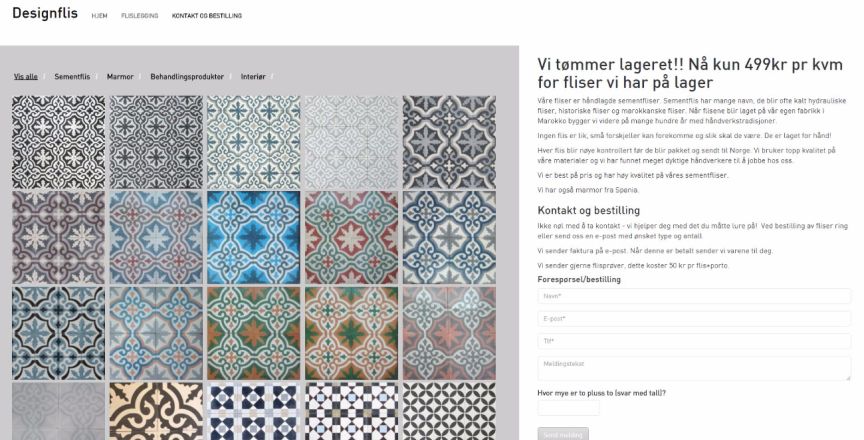 Designflis selger håndlagde sementfliser og bruker hjemmesidene til å vise frem sine produkter.