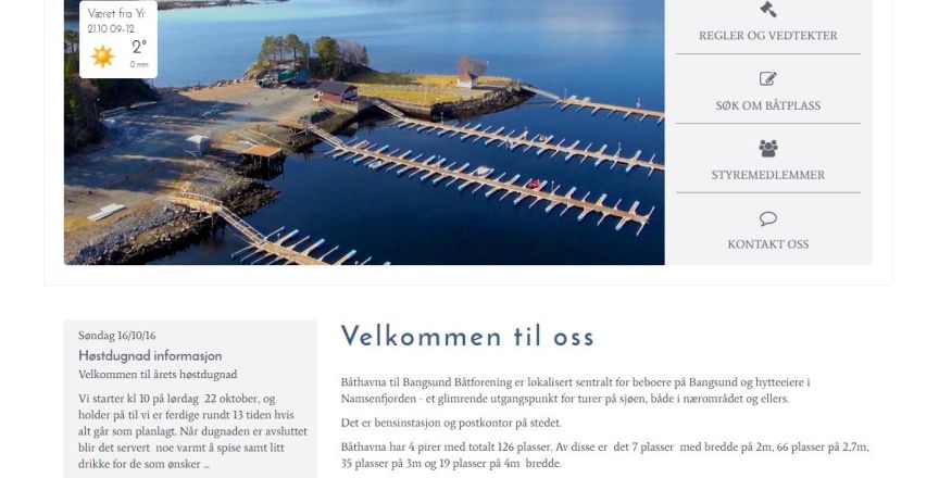 Hjemmesiden skal være en informasjonskanal for eksisterende og nye leietakere hos Bangsund Båtforening.