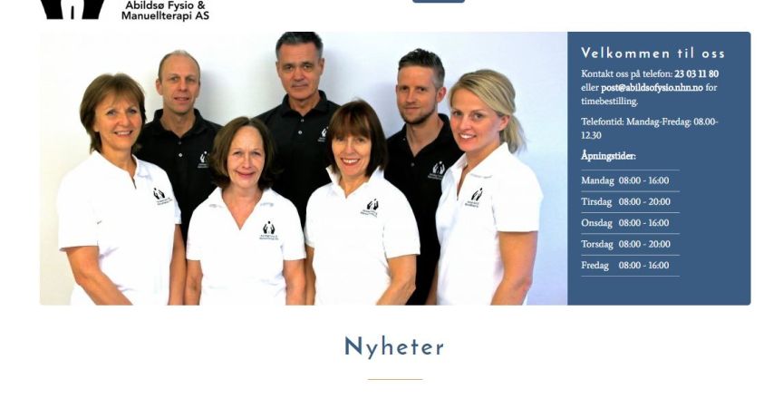AFFY har laget hjemmeside for Abildsø Fysioterapi. På hjemmesidene kan du lese om behandlingstilbud, nyheter og kontaktinfo til de ansatte.