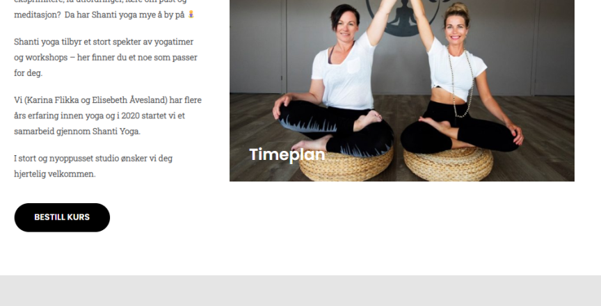 Shanti Yoga holder til i Flekkefjord. Hjemmesiden brukes til å selge billetter til yogakurs, yoga-retreats og eventer. Siden er bygget på Wordpress og Woocommerce nettbutikk med VIPPS betalingsløsning.