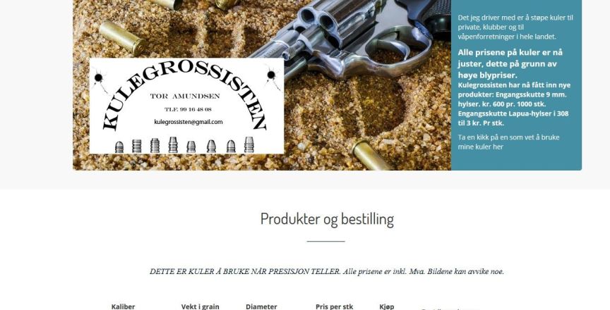 Støper kuler til private, klubber og til våpenforretninger i hele landet.
