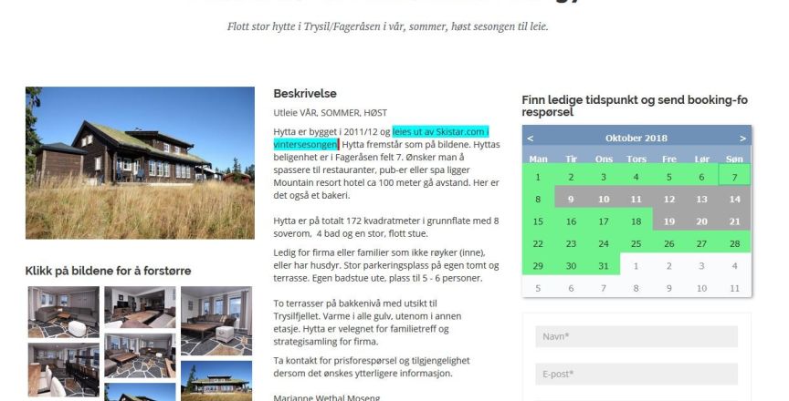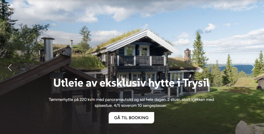 Hjemmeside for utleie av eksklusiv hytte i Trysil. Affy har levert bookingløsning og hjemmeside med publiseringsløsning for presentasjon av hytta.