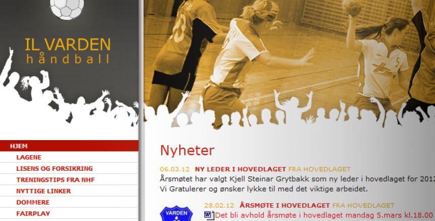 IL Varden Håndball er en undergruppe av IL Varden i Meråker. AFFY har levert design og publiseringsløsning. Sigurd Brørs har designet sidene.