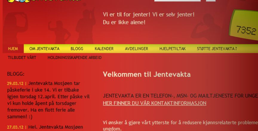 Jentevakta er en krisetelefon for unge jenter. AFFY har levert design og publiseringsløsning. Sigurd Brørs har designet sidene.