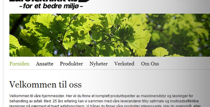 EuroTeknikk as ble grunnlagt i 1985 og er i dag Norges eldste og ledende totalleverandør av avfallsteknisk utstyr. AFFY har levert webdesign og publiseringsløsning