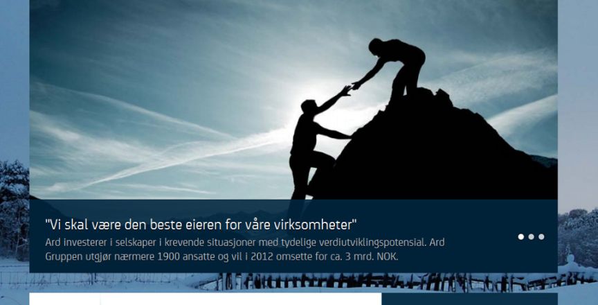 Ard er et privateid investeringsselskap. AFFY har levert publiseringsløsning og programmering. Nettsidene er mobiltilpasset vha responsivt design. Design er laget av Identicon.
