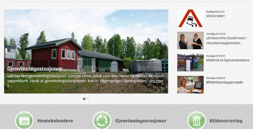 Glåmdal Interkommunale Renovasjonsselskap benytter sine hjemmesider til å informere kundene om henterutiner, gjenvinningsstasjoner med mer.