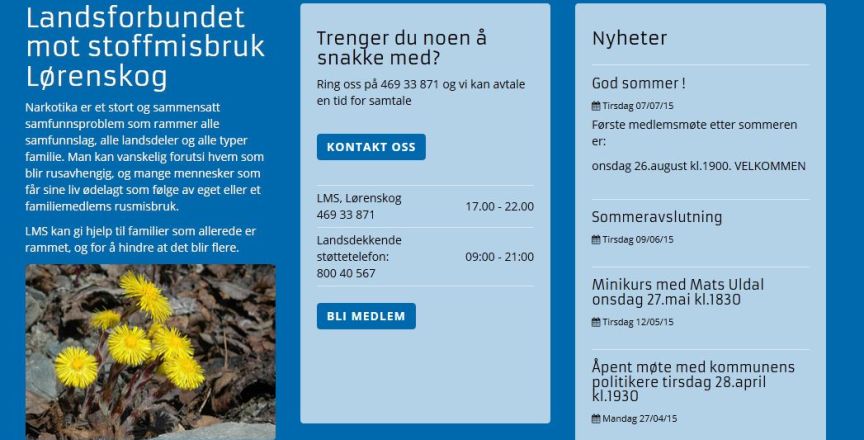 LMS avdeling Lørenskog er en av 34 lokalavdelinger i Landsforbundet mot stoffmisbruk.Hjemmesiden brukest til å informere medlemmer og andre interesser.
