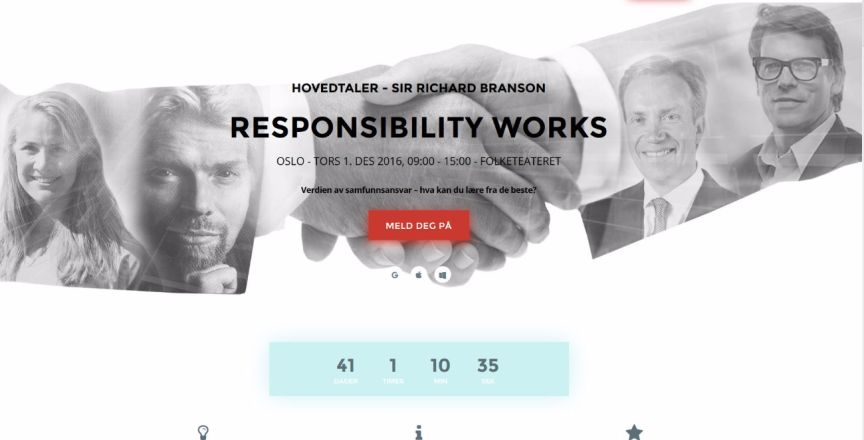 Responsibility Works er et seminar med fokus på samfunnsansvar som arrangeres 1. desember. Hovedtaler er Sir Richard Branson. Sidene er laget med wordpress og har nettbutikk for kjøp av billetter.