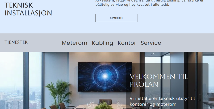 Hjemmeside for Prolan AS - leverandør og installatør av teknisk utstyr.