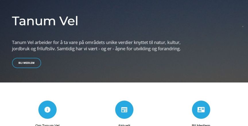 Tanum vel bruker hjemmesiden til å presentere sitt arbeid for medlemmer og andre interessenter. Tanum Vel er en forening som jobber for å ta vare på Tanums unike verdier knyttet til natur, kultur, jordbruk og friluftsliv. AFFY har laget hjemmesiden basert på
