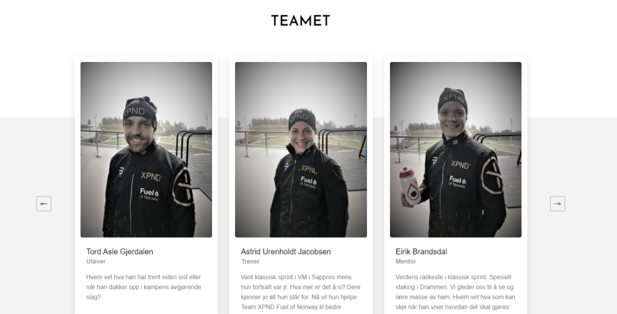 Teamet som ledes av Tord Asle Gjerdalen og Astrid Uhernholdt Jakobsen satser innen langløp i langrenn. Hjemmesiden brukes for å informere om teamet samt vise siste oppdateringer fra utøverne. AFFY har stått for hele jobben. Hjemmesiden er satt opp i