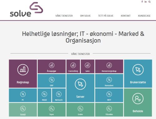 Solve Forretningspartner er en totalleverandør av støttefunksjoner innen områdene IT, økonomi og kompetanseutvikling. AFFY har levert publiseringsløsning og programmering av nettstedet. Design er utført av Metro AS.